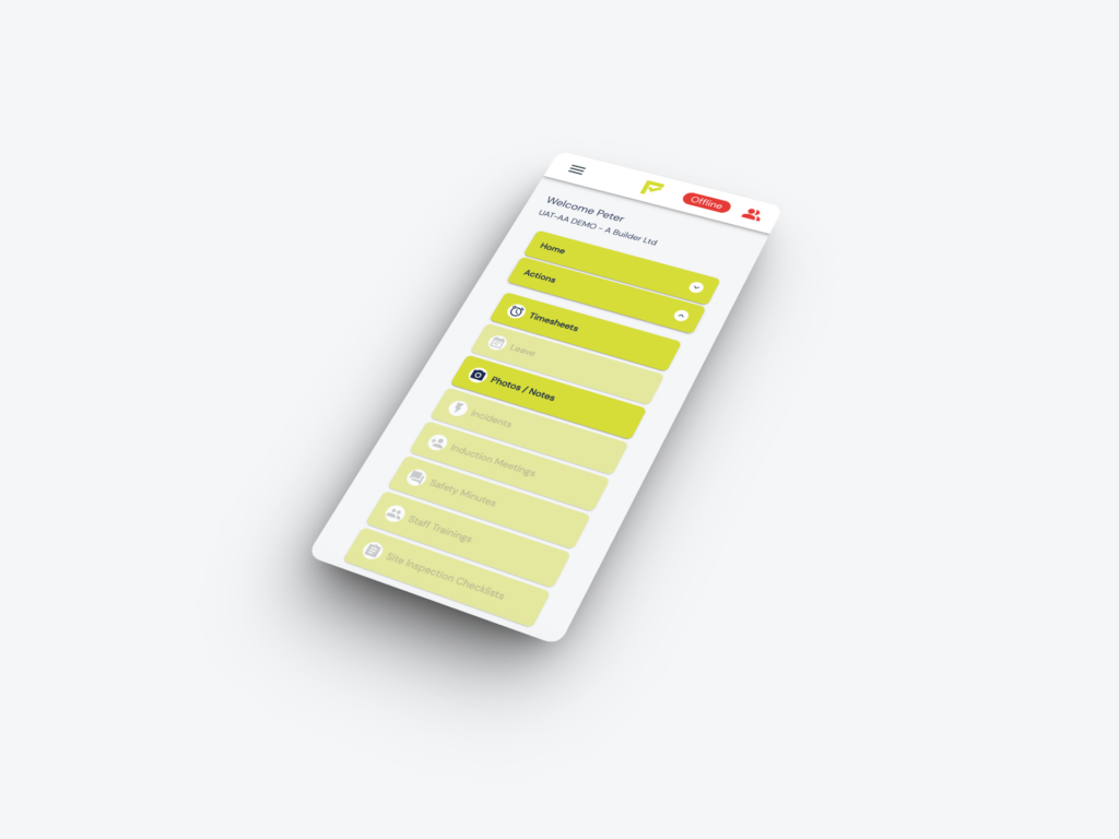 Even if you don’t have cell coverage or wifi, you can still start or stop a timesheet, and create a new photo / note record.